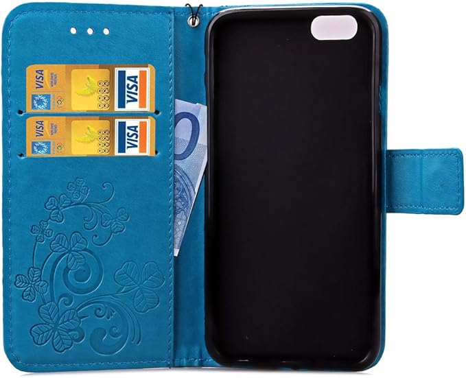 Lucky clover PU Leather Flip magnet Wallet Holder card slot protector for Apple iPhone 6 plus / 6S plus 5.5 inch blue