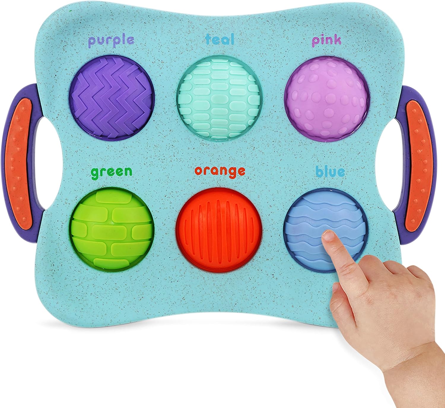 Toy learning tablet suitable for children, with textured bubbles